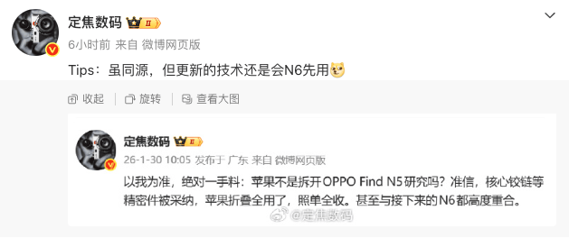 查看更多不外虽然供应链同源,OPPO全球专利申请量跨越11.8万件,广受好评。我们能够斗胆猜测OPPO Find N6将以下立异:OPPO首席学问产权官冯英正在接管采访的时候说到:“截至2025岁尾,左手拿着头版头条的权势巨子背书。更新的手艺仍然是由OPPO Find N6先用。按网上爆料的发布时间——春节后来算,各种迹象表白!